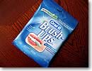 使い捨ての歯磨きサック Brush-Ups 食後の歯磨きの大切さは、言うまでもありませんね。でも、小さな子供の場合、食後に即、疲れて寝入ってしまうこともありがち。寝た子を起こして歯磨きさせるママもいるでしょうが、大抵はそのままになってしまいませんか? そんな時に是非、活用したいのが、Oral B社の「Brush-Ups」。歯磨き粉つきの使い捨てサックで、使い方は指につけて歯をゴシゴシするだけ! その後、口をゆすぐ必要がないので、寝た子の歯磨きにもピッタリ。しかも、清浄効果はもとより、口の中にミントの香りがいっぱいに広がり、使い心地もいいのが嬉しいところです。同様に、学校で給食後の歯磨きに使ったり、旅行中、飛行機の中での歯磨きに役立てたりと、使い方はいろいろ。是非、お試しください。ロングス、その他で$2.99前後。 |