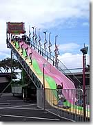■学校やコミュニティーが主催 ハワイには「EKフェルナンデス・ショーズ」という1903年創立のカーニバル運営会社が1つだけあり、主に学校やコミュニティーが運営資金集めなどを目的に開催を依頼。という訳で、主要な乗り物は構造上、移動が可能なように下部はトラックのようになっています。でも、仮設の遊園地といっても、乗り物は常に整備・点検されているから、本格的で万全なのです。同社には、カーニバルを心待ちにするハワイの子供たちから、いつも「次のカーニバルはどこですか」と、ひっきりなしに問い合わせがあるほどの人気だそうです。 |
