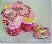 ビーチサンダル型の小物入れ$18。小さい方は置物で$5 |