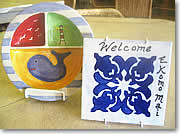 素焼きの陶器に色を付け、後は店の方で仕上げてくれるという、気軽なスタイルの陶器作りやその専門ショップが、昨今大人気のハワイ。今回ご紹介する「クレイ・カフェ」は、ホノルル郊外のアイナ・ハイナにある、そんな陶器作り専門ショップの一つです。昨年まで「ファイヤー&グレイズ」との名で親しまれていましたが、新オーナーを得たのを機に、今年1月からショップ名を変更。料金システムも変わって、グッとお手軽に陶器作りが楽しめるようになりました。中でもローカルの子供たちや女性の間で、多大な人気を集めています。 |