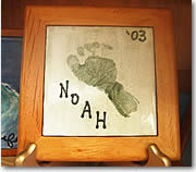 6ヶ月以下のベビーの足型入りタイルは、無料で作成できます! (フレームは別売り) |