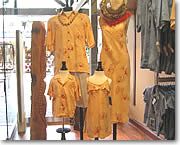 同ショップのドレスは全てオーナーがデザインし、ハワイで作られたものばかり。優しい色合いとプリントで、大変女性らしい印象のドレスですが、レディス・ドレスの場合、デザイン自体はよけいな飾り物がなく、いたってシンプル。家で手洗いできるレーヨン100%の素材は、アイロンがけが不要でサラサラとし、着心地も満点。カジュアルなリゾート・ファッションとしてだけでなく、通勤着として、ハワイのビジネスウーマンの間でも人気を集めています。
