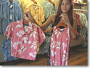 嬉しいのは、市販の価格に$10をプラスするだけで、カスタム・オーダーもできることです。「気に入ったドレスがあったけれど、息子のサイズのアロハシャツが売り切れていた」とか、「娘用に同デザイン、同色でムームーを作りたい」。または「ムームーの丈が長すぎる」などといったリクエストにも、7日間(週末を除く)で対応してくれるシステムが大好評。それも仕立て直しではなく、工場で新たに作ってくれることを考えれば、定価プラス$10という料金設定は、大変良心的ではないでしょうか?