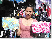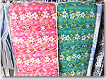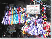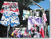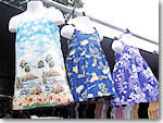 ■キュートなムームーがなんと$8から! たとえばキッズ用ムームーやアロハシャツ。キッズ用アロハウエアは、ハワイのデパートでも案外アイテムが限られ、バラエティが思いのほか少ないもの。気に入ったデザインが見つかってもサイズやカラーが限定されていて、価格も$20〜$30が平均とやや高めです。一方、スワップミートではサイズもバラエティ豊かなら、価格も$8〜$13ととってもリーズナブル! キッズ用水着も一般の店ではムームーと同様の価格帯ですが、スワップミートでは$10前後。しかもハワイといえども11月〜4月のいわゆる冬期には、常設店では水着やボードショーツのセレクションが激減するもの。ところがスワップミートでは時期に関わらず、これら「夏のアイテム」が豊富なのもうれしいですね。 |