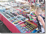 そのほかスワップミートでは、布地の専門店やフラッグ(旗)用品の店、台所用品のブース、ハワイアン・ジュエリーの業者、オモチャ屋、下着屋、CDショップなど、とにかくありとあらゆる業者が出店しています。テント村のごとき様相のスワップミートですが、ごく普通のショッピングセンターに出かけるような感覚で、あれこれ買いに出かけるのも楽しいのではないでしょうか? |