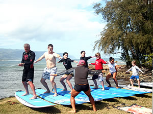 サンセット・ビーチ・ハウスに宿泊しながら、本場ハワイのサーフィンを極める「サーフィン合宿」も人気です。オーナーのバディさんの弟さんは、サンセット・ビーチで唯一サーフィンを教える資格を持つ伝説のプロサーファー、アンクル・ブライアン(ブライアンおじさん)。数々の有名なプロ・サーファーの指導にあたってきたアンクル・ブライアンの優しく丁寧なサーフィン・レッスンを毎日2時間みっちりと受けることができるんです。サーフィン合宿には、1日2時間のサーフィン・レッスンとサンセット・ビーチハウスでの宿泊、サーフボードとラッシュガードのレンタル、サーフ・ポイントまでの送迎が含まれ、最低3日間より申し込むことができます。なお、この合宿に参加する方は必ず日本で海外旅行保険の購入が義務付けられていますのでお忘れなく(海外保険購入証明書のコピーを持参してください)。 |