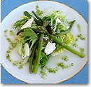 グリーンの野菜とリコッタチーズのホワイトが美しいコントラストを見せる「マリポサ・サラダ」$9.50は、ヘルシー感いっぱいのアペタイザーです。どのメニューもけっこうボリュームがあるので、ファミリーやグループなら、アペタイザーやアントレ、デザートなどを何品かオーダーし、シェアしてあれこれ食べるのがおススメ!
