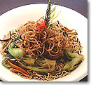また、マンゴ・マティニ、リーヒンムイ・マルガリータ、ビッグアイランド・ラバ・フローといったハワイらしいカクテルや、ビッグ・アロハ・ブリュワリー特製ローカルビール、豊富なワイン・セレクションなど、アイランド・キュイジーヌの味をさらに引き立ててくれるリカー類の充実振りもうれしいかぎり。ププ(ハワイ語でおつまみ)には、「フレッシュ・コールド・ポキ」や「オリジナル・フライド・ポキ」を、ぜひお試しあれ! 写真のディッシュは、アントレメニューより、「”ザ・オリジナル”サムズ・アジアン・ヴィール・オーソブッコ」$27.50。エスニック系の野菜がたっぷり入ったチャイニーズ・スタイルのフライドヌードルと、子牛肉のオーソブッコが合体してしまった、なんともユニークなひと皿。お皿の直径は40センチ近くあろうかというほどのビッグボリュームです。フライドヌードルの味付けは甘めで濃厚な、いかにもローカル風。柔らかなオーソブッコそのものは、割合あっさりとしています。