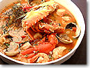 もう一品は同じくアントレの「ハワイアン・スタイル・シーフード・ブイヤベース」$34.95。香り高いローカルスタイルのトマトスープでじっくり煮込んだブイヤベースには、ロブスター、クラブレッグ、ホタテ、エビ、サカナ、クラムなどの海の幸に加えタロ芋やスイートポテトもたっぷり。エスニックな調味料で味をととのえたスープはかなりスパイシー。コクのあるピリ辛スープが食欲をそそります。