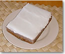 さてJJから2ブロック東に『カフェ・ローファー』があります。ここは、たまにガイドブックにも載っている有名店で、お洒落な雰囲気のお店です。ここのケーキは大体4ドル前後、ただしとても大ぶりなので食べごたえがあります。どのケーキもしっとりと美味しくて、満足する事間違い無し。わたしはチーズケーキが大好きです。他にもフルーツのゼリー寄せや、バナナオレオ、ナポレオンなど、甘党心をくすぐるラインナップが揃っています。この店はコーヒーが美味しい事でも有名です。勿論おかわり自由、こうなったらもう行くしかないでしょう。 ここで、ちょっとおまけです。スーパーのケーキにもなかなか美味しいのがあるよ、ってことで、『カイムキショッピングプラザ』の1階にあるTIMESスーパーマーケットにて、超B級ながら、メチャ美味しい『タロスクエア(ハウピア)』を購入!ほくほくとした芋羊羹のような口当たりで、甘さ控えめ。いくらでも食べられてしまうので、ダイエット中のあなた(あっ、私もか)は要注意。税込で約6ドル。ハワイでは大概どこのスーパーマーケットにも置いてあると思います。見た目は地味だけど、超!美味しいので是非是非食べてみてね。