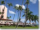 有名なトロピカル・カクテルの名を冠したピンクパレスのマイタイ・バーは、ワイキキで最も海に近いビーチ・バーです。バーとビーチの仕切りは低いフェンス一つ。目の前には多くの人で賑わうワイキキビーチが広がり、青く輝く海越しに雄大なダイヤモンドヘッドも一望できる最高のロケーションにあります。マイタイ発祥の店とも言われていますが、実はこの有名なカクテルが最初に作られたのはサンフランシスコのとあるバーだったとか。でも、トロピカル・カクテルを代表するほど有名になったのは、ここマイタイ・バーのメニューに加わってからだそうです。それもすべてこのハワイアンなロケーションのなせる技。海辺で楽しむマイタイの味はまた格別なのです。