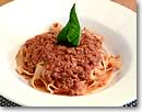 | ホームメードのミートソースがたっぷりのフェットチーネ・ボロネーゼ$9.50。シンプルながらこくのある味わい |