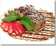 | 上品な甘さのヘーゼルナッツとアーモンドのメレンゲをレイヤードしたデザートのChocolate Hazelnut Dacquoise。$8.50 |
