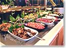 <ランチ> 月〜金曜 :「イースト・ミーツ・ウエスト」ブッフェ/$21、($10.50) パシフィックリム・スタイルのサラダバー、アペタイザー、シーフード、パスタなどに加え、スペシャリティ・ステーションやジャパニーズ・ステーション(寿司、しゃぶしゃぶ、おでん、天ぷらなど)など多彩なメニューが並びます。もちろんデザート類も豊富。