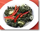 | 人気メニューのSaag Aloo($3)はポテトとペースト状のホーレン草カレー |
