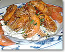 いずれも甲乙つけがたい美味しさだったのですが、その中でも特に感動したのが、海老の塩、胡椒風味です。さすがシーフード・レストランと銘打っているだけあって、海老は大きく身がしまって、まったく臭みがありませんでした。大き目の海老をサッと揚げて、塩、胡椒、ニンニク、葱などと絡めてあります。海老はサクサクッと頭から殻ごといけてしまうので、手も汚れないし、いい感じ。下に野菜が敷いてあるので、油気も良い感じに抜けており、まったく胃にもたれませんでした。最初、$8.95とは少々高いように感じたのですが、実際大きな海老と美味しさで、とってもお得な事が分かりました。是非、トライしてみてくださいね。