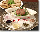 | クラシックレシピで作られる「Steak Tartare」($12)。生のテンダーロインビーフを伝統的シーズニングで頂くシグニチャーメニュー |
