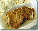 もちろん、全部食べ切れるはずもなく、残りはその日の夕ご飯になりました。「いや〜、ここはなかなかの穴場」。地味な店頭からは到底想像もつかないような、繊細でオシャレな味でした。なのに、思いっきり気前のよい量で出てくるんですから、人気があるのは当たり前ですよね。店内では、チャーシュー・プレート($5.95)を、オーダーしている人がかなり多かったので、次はそれにチャレンジしてみたいと思います。ハワイアンプレートも、サラダも、サンドイッチもどれも美味しそう! ってことで、当分ここのお店、通い続けることになりそうです。