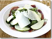 | 生ハムとリンゴ、パルメジャンチーズをバルサミコドレッシングで和えた爽やかな味わいのサラダ、「プロシュート&アップル」$9.50 |