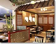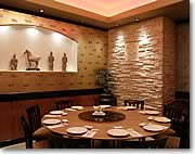 ●居心地の良い空間 ダウンタウンという場所柄、周辺で働く地元の人達が毎日たくさん訪れます。賞のタイトルがリトル・レストランなので、小さなお店を想像される方も多いと思いますが、拡張工事を経て、現在の座席数は100を数え、2部屋の個室も完備されました。適度なゆとりでテーブルが置かれ、チャイニーズ・レストランにつきもののきらびやかな装飾などがほとんどない店内は、なかなかオシャレで小粋な佇まい。椅子やテーブル、壁や床などは柔らかな色調でまとめられ、生垣風の仕切りや青竹、民家の庇、壁、窓など様々な工夫がさりげなく施された店内には居心地の良い雰囲気が漂っています。まさに、小さな村のヌードルショップといった風情なのでしょうね(勝手な想像ですが…)。 |