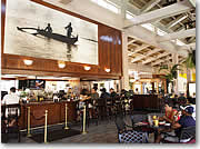 「バー」と聞くと、「気軽に入れないかも…」なんて思われる方もいるかもしれませんが、この店はそんな心配はまったく要りません。最初にも書いた通り、なんといってもアラモアナ・センターの中だし、雰囲気はいたってカジュアルなのですから。ちなみに「ドレスコードは?」とスタッフに聞いたところ「そんなのあるわけ無いでしょ!」との答えがすぐに返ってきました。夕方5時以降は21歳以上のみ入店できるちょっぴり大人のバーになってしまいますが、昼間だったらとりあえず年齢制限もありませんから、子供連れのファミリーも気兼ねなくご利用くださいね。 |