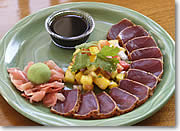 | まわりを焙った刺身風アヒ(マグロ)をピリ辛のケージャンソースでいただくシェフおすすめの一皿「Ahi Ruby Rare」時価 |