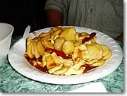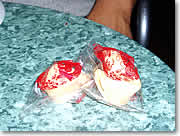 ●当たってる! フォーチューンクッキー 大体、とっても一般的なことが書いてあって、誰が見てもなんとなく当たった気分になるんですけどね、でも今回は私たち2人とも、かなり当たっていたので嬉しくなりました。一緒に言った友人の紙には「貴方は一生を通じて旅行を何度もするでしょう」とありましたが、彼は年間4回から5回、メインランドや日本に旅行するくらいの旅行好き、つい最近も愛知万博まで、はるばるハワイから行ってきたばかりなんです。私の紙にも、結構当たっていることが書いてありほくそえんでしまいました(言うと叶わなくなりそうだから秘密!)。 きっと大量生産で作られているフォーチューンクッキーで、当たるも当たらないもないんだけど、ちょっと夢があって、いいですよね。 … と、いうわけで、ヘルシーなチャイニーズ、皆様も一度ためしてみてくださいね。 |