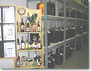 ●テイスティングは何杯でも ワイナリーに入ると、右手カウンターにあるコンピューターに名前と住所、電話番号とEメールアドレスを各自打ち込んでチェックインします。店内左手には、一升瓶の10倍ほどの巨大ボトルがずらり。発酵の途中のようで、上部からはぶくぶくと泡が立っています。棚は3段に分かれていて、それぞれ温度が違い、発酵具合に合わせて場所を移し変えていくそうです。 |