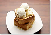 | ホカホカのトーストをバターとハチミツ、アイスクリームで仕上げた人気のデザート、ハニートースト$6.75 |