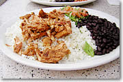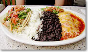 ●さて、お味のほうは? さて、早速試食っと。「美味しいーっ!」、メインランド系大味を半ば予想していた私ですが、これはいい意味で期待を裏切る美味しさではありませんか!とくにAheeライスがサラダっぽくて美味しいんですよ。長粒種のお米をふわっと仕上げて、かるくフリカケ風なものが混ぜてあり、微かにバターのフレーバーがします。決して主張しすぎず、でも個性的な美味しさ。それにサルサやスパイシーフィッシュを混ぜて食べると、「うーん幸せー(両目を閉じて鼻腔を膨らましつつ首をふる)」。付け合せの黒豆、見た目はあんこみたいなんですが、軽い塩味でこれまた美味でした。ヘルシーを全面的に押し出しているレストランだけあって、これまたラードが混ざっておらずあっさり。なのに、食後はかなりの満足感でのけぞり歩く始末でした。 |