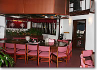 | ●こだわりの食材を目の前で焼いてもらって食べる至福の一時 数々のパフォーマンスの中でも、特に有名なパフォーマンスとして知られているのがエビの鉄板焼き。「将軍」のメニューの中にももちろんエビの鉄板焼きが含まれています。鉄板の上に一列に並べられたエビに油を垂らして火をつけると、今度は玉ねぎの時とは比べ物にならない勢いで炎が天井近くまで一気に燃え上がります。炎に包まれて姿が全く見えなくなったエビは丸焦げになったのでは、と心配になりますが、皿に盛られたエビはほんのりピンク色をしてなんとも美味しそう。エビを美味しくいただいた後、今度はエビの王様「ロブスター」の登場です。「将軍」コースで出されるロブスターは、食材にこだわる田中オブ東京が自信を持って仕入れたトンガ産のスパイニー・ロブスターと呼ばれるもの。他のメニューでもロブスターは食べられますが、メニューによって使うロブスターが変わってきます。このトンガ産のロブスターは甘味が強く、肉厚の噛みごたえのあるプリプリした身からは、噛む度に旨みたっぷりの汁が出てきます。そして高級フィレステーキも「高級」という名にふさわしく、アイオワの農場で大切に育てられた牛肉を3週間半から4週間熟成させたこだわりの一品。お好みによって、ニンニクを入れてステーキを焼いてもらうことも可能です。ステーキは厚めに切られているにも関わらず、口に入れるとその柔らかさにびっくり。肉自体の味がおいしいので、ソースなど何も付けずに食べても良いのですが、是非自家製のマスタード・ソースを付けて食べてみてください。まろやかで上品な肉本来の味に、ピリッとパンチの効いたマスタード・ソースが絶妙に絡み合ってとっても美味。 これだけの量があると1人前にしては多すぎると感じるかもしれませんが、女性1人で完食する人も決して少なくないのだとか。それもそのはず、私も「将軍」を頼んでみてその理由がよく分かりました。こだわりの食材を使った料理自体も食が進む理由の1つですが、目の前でシェフが行うパフォーマンスを楽しみながら出来立ての料理をその場で食べていると、不思議と次から次へと料理を口に運んでしまいます。ただ美味しい料理を食べるだけではなく、ビックリするようなパフォーマンスやシェフの面白いジョークなど、笑いの絶えない一時が、レストランを後にする時にいつもより満足した気分にさせてくれるのでしょう。 |