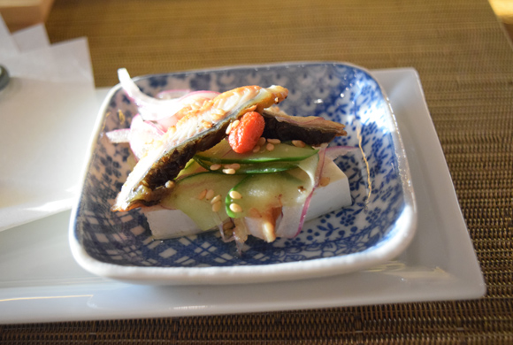 リッチで滑らかなお豆腐と酢の物に鰻が絶妙マッチ!