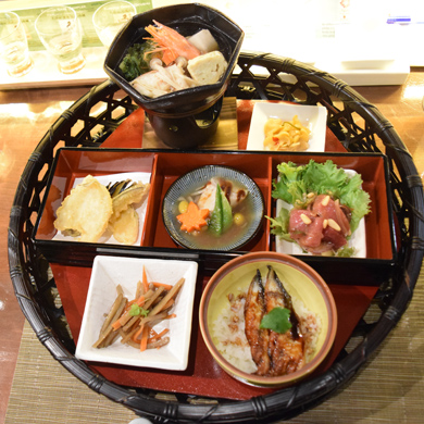 【新メニュー3:籠懐石 もみじ $29.95】懐石スタイルのお料理は、てんぷら、酒蒸し、アヒポケ、寄せ鍋、うな重が盛り込まれた豪華版で食べ応え満点です。どのお料理も特に凝っているという感じではなく、新鮮な素材を生かした本当に美味しいと思える和食です。こんなに美味しいお魚料理をハワイで食べられるとは思っていなかったので、感激してしまった編集部員でした。