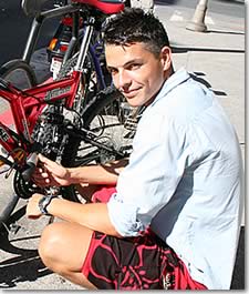 ホノルル市内の移動は、環境に負担をかけない自転車で! (ザ・イリカイ・ホテルの前で)