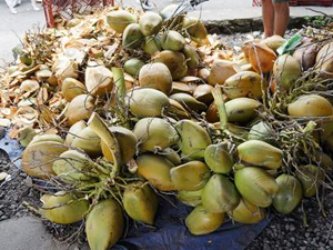 ■ヒロのファマケは蚤の市?! 日系移民の多い、ちょっと時間が止まったようなレトロな街、ハワイ島のヒロでもファマケ(ファーマーズ・マーケット)が開催されています。ヒロタウンのはずれにあるこのファマケは道をはさんで両側に広がります。普段は駐車場なのでしょうか?! 砂利のうえに張った太陽がほとんど差し込まない大きなテントの下に小さなお店が雑然と並び、野菜、果物などが無造作に並んでいます。 道の向こう側にはハワイアン・キルト、ラフィア細工や服などが売っていました。なんともアジアンな雰囲気。どこかの国に「蚤の市」っていうのがありますが、まさにそんな感じです。お店の方は、さすがヒロ、アジア系が多いみたいですよ。ハワイアンもいるのでしょうけど~。。。こんな、何が飛び出してくるかわからない雰囲気ってワクワクしませんか~?! ドエラ~イお買い得な掘り出し物がみつかるのでは~と、ドキドキしながら1件ずつチェックしました~。じっくり見ても、お店の人も「ハロー」とにこやかな挨拶だけで、のんびり構えています。商売っ気もありません。 砂利の上にヤシの木から切り取ったばかりのココナッツがごろごろ寝転がっています。買うと、ストローを入れる穴をあけてくれ、その場で飲めます。ハワイでは最近、ココナッツジュースの紙パックや缶ジュースが流行っているんですよ~。栄養素が高く、運動中のスポーツドリンクとして人気です。ABCストアでも売っていますので、要チェックですぞ。でも本物のココナッツジュースが1番良いのはいうまでもありませんね。 この、とっても素朴なハワイ島ヒロのファマケは、水、土曜日は午前6時~午後4時まで、月、火、木、日曜日も同じ時間体で、店舗数を少なくして開店しているそうです。 観光地化されていない、地域密着型のファマケをのんびり散策するのも楽しいかもしれませんね~♪ ヒロのファマケのウェブサイト(英語): http://www.hilofarmersmarket.com/ (2012年6月更新) |
