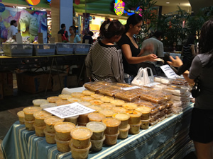 ■室内のファマケで涼しい~♪ ファマケの連載をはじめてから、いつかは私の地元カネオヘを紹介したいと思っていました~。カネオヘにいらした事はありますか~? カイルアやノースショアに行かれる方は多くても、素通りされる事が多い町ではないでしょうか~。遠浅でターコイスブルーの海、緑におおわれたコオラウ山脈、その対比が美しいカネオヘはオアフ島では2番目に大きい町なのですよ~。といっても、洗練とはほど遠い庶民の町ですね~。広大なホオマルヒア植物園や、カネオヘ平等院でも知られています。このカネオヘ平等院には欧米の観光バスは良く停まっていますが、残念ながら、日本人観光客はほとんど見ないですね~。まぁ~、ハワイにまできて、なんで日本の寺院を見るの~?ってな感じでしょうか~。 カネオヘのファマケはメイシーズやシアーズ、映画館もあるウィンドワード・ショッピングモールで開催されます。駐車場も広いし、バス停も真ん前にあります。以前は駐車場で開催されていましたが、今は館内です。な、の、で、涼しくてイイ! 毎週、水曜日の午後2時半~7時半にオープンです。お買いものをしているのは、仕事帰りの方、子連れのお母さん、リタイアした老夫婦って感じで、生活感たっぷりのファマケです。 特に多いのが八百屋さんとタイ・ベトナム・フィリピン料理。美味しそうなタイカレー、フォー、生春巻きやルンピアが並んでいます。水曜日のカネオヘの家庭の食卓には、こんな料理が並ぶのでしょうね~。 ワイマナロのナロファームが提供しているので、お野菜の鮮度も抜群です! ショッピングモールが食べ物でいっぱいになる、ウィンドワードモールのファマケ、私も良く出没しますので、お見かけしたら声をかけてくださいね♪ ホームページ: www.windwardmall.com