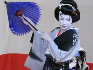 ■美味しいご飯を食べつつ、エンターテイメントを堪能 まずは、ハワイ出雲大社婦人会の人々の手による美味しいディナーが振舞われました。しっかり味の染みたお煮しめや醤油チキン、ナマスにマカロニサラダ…日本の和食とはちょっと違った、でもとても美味しいローカル和食の数々に、思わずニッコリ。 舞台では、エンターテイメントが始まりましたよ。まずは、ハワイ祭り太鼓の皆さん。気合が入りまくった熱い太鼓演奏に、皆前のめりで聴き入ります。魂を揺さぶられるような激しい太鼓演奏に会場からは喝采が巻き起こりました。 続いて坂東流の日本舞踊。太鼓が動だとしたら、こちらは静。日本人の私たちが忘れかけている日本の心、ハワイの日系人の人々の間にはしっかりと受け継がれているようです。美しい所作の日本舞踊にまたまたうっとり。 ハワイには沖縄系の人々がすごく多いので、琉球舞踊も盛んです。仲宗根ダンス・アカデミーによる琉球舞踊では、子どもたちが元気一杯に「アシビナー」(この曲大好き!)を踊ったり、名曲「島娘」に合わせた美しい舞踊も登場。時々観客席から指笛が響きます。 そして待ってました、ハワイが誇る新舞踊の名手、ダズ渡久地の登場です。メイクと衣装をばっちり決めた、ダズ。美しいです! 妖艶とは彼のためにある言葉かもしれませんね。 その後、ジョン・サカイ・ミュージック・スタジオによるカラオケ、ラッキー・ナンバー(福引)と続き、大いに盛り上がったまま、ハワイ出雲大社の第105回秋祭りは幕を閉じました。 日本を遠く離れたハワイという土地で、日本を思いながら日系人の人々が100年以上も行ってきたハワイ出雲大社の秋祭り。今の日本ではなかなか見ることもなくなった村祭りを思わせる、あたたかみあふれる秋祭りに、何とも言えず懐かしい気分がかきたてられました。この時期ハワイにお越しの方は、ぜひ参加してみてくださいね。 また、たくさんのボランティアの人々がかいがいしく働いておられるのも印象的でした。ハワイに住んでいる方でも、旅行者の方でも季節のイベントごとにボランティアに参加できます。詳しくは出雲大社にお尋ねください。 ●ハワイ出雲大社 (日本語でどうぞ)