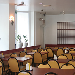 ■抜群のロケーションでロコに大うけ狙い! アラモアナセンターの山側を走るカピオラニ大通り。ダウンタウンに向け直進すると、ワード通りと交差する手前で、右手にニール・ブレイズデル・センターのドームが見えてきます。その海側にユッチャン2号店があります。マッキンリー・カーウォッシュとゴルフ用品の老舗プロアマ・ショップの並びといえば、わかりやすいかも。 さて明るい店内に入るとゆったりとしたブース席が壁際にならび、1号店に比べるとかなりの広さ。オーナーのチャさん曰く「ここはローカルにとってアクセス便利な場所なので、ユッチャンの味をより多くの方に楽しんでいただけるのではと期待してます。駐車場もついてますしね。もちろん本店とメニューも味も同じですが、2号店だけのランチスペシャルがありますよ」。 その気になるランチスペシャル(11:00〜14:00)は、カルビ、ブルゴキ、チキンとご飯がついたミックス・プレート($9)、または激辛イカのプレート、キムチ炒飯、ビビンバ、チヂミ(各$8)の合計5種類。他にも焼肉(カルビかブルゴキ1品)と冷麺のセット($18.99)もあるので、冷麺に合わせてこってり系のものをちょっとつまみたい時にどうぞ。 |
