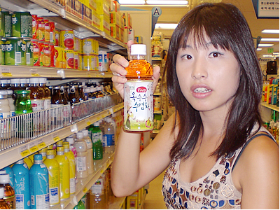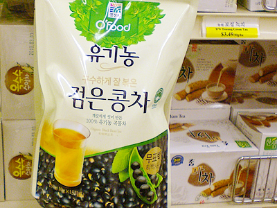 スタッフ:おっ、ストア中央の乾物コーナーにお目当てのお茶発見! 韓国といえば健康によさそうなお茶が豊富だけど、一体どんなものを選べばいいのかな? ソニア:お茶のことならまかせて! まずは一番人気のゆず茶($8.99)から。韓国では寒い冬の市場には必ずゆず茶をカップ売りする屋台が出てる程、親しまれてるお茶なの。体が温まって喉に効くわよ〜。なつめ茶($11.29)も滋養強壮、疲労回復に効き目があるとして定番人気ね。あとは韓国といえば朝鮮人参。スタンダードな朝鮮人参ならナント$9.99で売ってるの。苦くて飲みにくいという人は、朝鮮人参とハチミツ($5.99)、朝鮮人参となつめ($5.99)といった飲みやすい味つきのものにトライしてみて。 スタッフ:確かにどれも格安! でも、毎日飲むような普通のお茶はないのかな? 日本なら夏は麦茶を冷やして飲むんだけど。 ソニア:もちろんあるわよ! わたしが毎日冷やして愛飲しててるのがこの黒豆茶($2.99)。ちょっと香ばしくて麦茶と味が似てるかも。もちろん温かいままでもおいしいわよ。 スタッフ:ホントだ。これは飲んでみたいな〜。値段的にも毎日飲んでも安心だしね…(笑)!