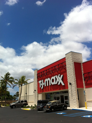 また、もう一つのショッピンングエリアは、こちらのモールの道路を挟んで少し行った所にあるのですが、パールシティー、ゲートウェイ、ショッピングセンター(1150 Kuala St, Pearl City HI 96782)。最近出来たばかりの、ディスカウントデパートメントショップ、「T.J.MAXX(ティージェイ・マックス)」を初め、ハワイでは今の所ここしかない「べびーザらス」、そして、新しめの「マクドナルド」、ペットショップ、ゴルフ専門店、わりと新しい「ロングスドラッグス」、「ブルーハワイ寿司」、ビューティーサプライのお店や、「ハワイで挙式をするならこちらでドレスを買ったらいかが? 結構安く買えますよ~!」の「デービッド・ブライダル」、他には、私御用達の「ハナネイルサロン」や、その名の通りの「ラーメン屋(Ramenya)」、サンドウィッチの「サブウェイ」や、携帯屋さん、激安美容室「スーパーカット」等々…書ききれないぐらいのショップがこちらにも入っています。