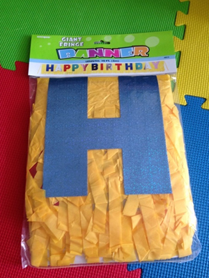 はい、そこで、今日、初めて、買い物に行ってきました。まずは、バナー。 HAPPY BIRTHDAY!と、壁に飾るやつです! そして、キャンドル! コップ、フォーク、ナプキン、お皿、テーブルクロス。。。。と、続きます。