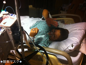 実は、風邪をひいていて、鼻から息がうまく吸えず、酸素が足りないということで、酸素マスクをされる。それでも苦しい!!