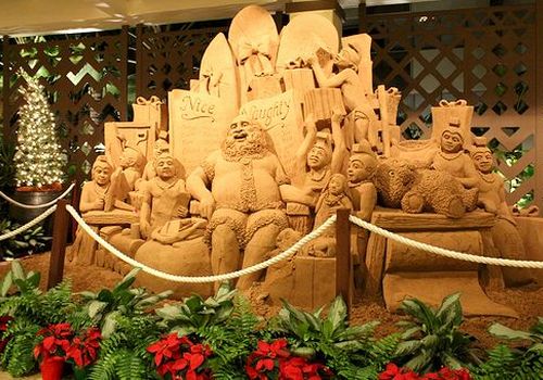 こちらはクリスマスツリーではなく、毎年恒例の砂だけで作られた巨大な彫像がエントランスでお出迎えしてくれます。
