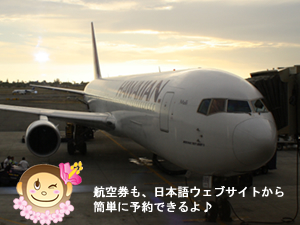 ワイキッキ:飛行機だって自分で手配できますよ。ハワイアン航空の日本語ホームページからラクラク予約! チケットの予約方法はこちらのページを見てくださいね。