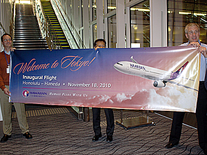 ハワイ時間の11月17日(水)、ハワイアン航空の457便がホノルル国際空港より羽田空港に向かって初就航しました。また、日本時間の11月19日(金)には、羽田からホノルルへ、ハワイアン航空458便が飛びました。
