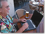 カウンターでパスワードを取得。PC持込の場合1時間$3。店内PC利用の場合は1時間$5 |