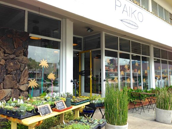 オシャレなショップが集まるカカアコ、その中でセンスの良さがひときわ光るボタニカルブティック&コーヒーバーの「PAIKO(パイコ)」。オシャレにアレンジした鉢植えや生花を購入できるほか、店内に併設されたカフェ「BLUE BAR」でゆっくりくつろげます。