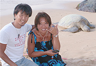 マッキーのシュリンプ・トラックから少し車を走らせたら、マクドナルドが見えてきます。そのお隣にあるのが「ウェーブ・ライディング・ヴィークルズ」。40年前、アメリカ東海岸のバージニア・ビーチからサーフボード工場としてスタートした店は、1985年にワイキキより車で10分のカイムキエリアに進出し、その後サーフィンのメッカであるオアフ島ハレイワに移転。サーフボードの購入から手入れはもちろん、ビラボンやボルコム、ハーレーから、印象的なイルカのマークが入ったオリジナル商品まで揃います。毎年12月、ノースショアのパイプラインで開催される世界的なサーフィン大会を記念して、「パイプライン」と書かれたロゴ入りタンクトップ($36)はスタッフのイチオシ商品。汗を吸収してくれるアスレチック・ジャージ素材が肌に気持ちよく、何と言ってもオリジナルのロゴがクールです。スタッフは片言の日本語で丁寧に対応してくれるので、お土産探しも安心。