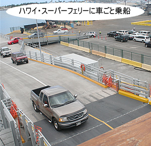 ●ハワイ・スーパーフェリーとは? *ハワイ・スーパーフェリーは、2009年3月19日(木)以降は、運行が休止となります。 ハワイ「ハワイ・スーパーフェリー」は、ハワイ諸島間を結ぶ新しい交通手段。乗船客はもちろん、車やレンタカーだけでなく、サーフボードなどの大きな荷物も簡単に持ち込める大型フェリーなのです。