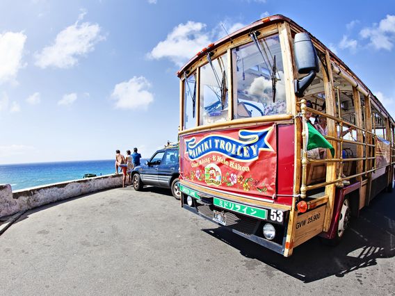 旅行者にとって、ホノルル周辺の移動手段として、ザ・バスに次いで身近な「足」となるのがトロリー。ワイキキから、ホノルル市内や東海岸などの主要な観光スポット、買い物が楽しめるショッピングセンターなどを効率良く結んでおり、クラシックな路面電車風デザインが人気です。ハワイの心地よい風を受けながら走るオープン・エアーなので、その爽快感と、街並みを観ること自体がひとつのアトラクション的な楽しみも。ハワイらしい陽気なドライバーたちがガイドを務めているのも、見どころです。チケットの有効期間内なら乗降自由なので、気ままに思いついたところでブラッと降りて、散策という使い方も可能。一味違ったハワイを見つけられるかもしれません。
